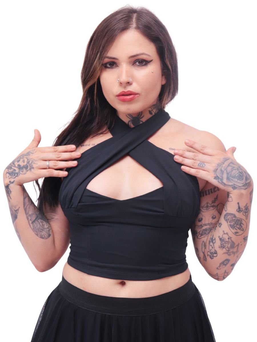Cropped Cruzado Pin-Up Dark Mellody – leve, ousado e feito para se adaptar ao seu jeito de ser.