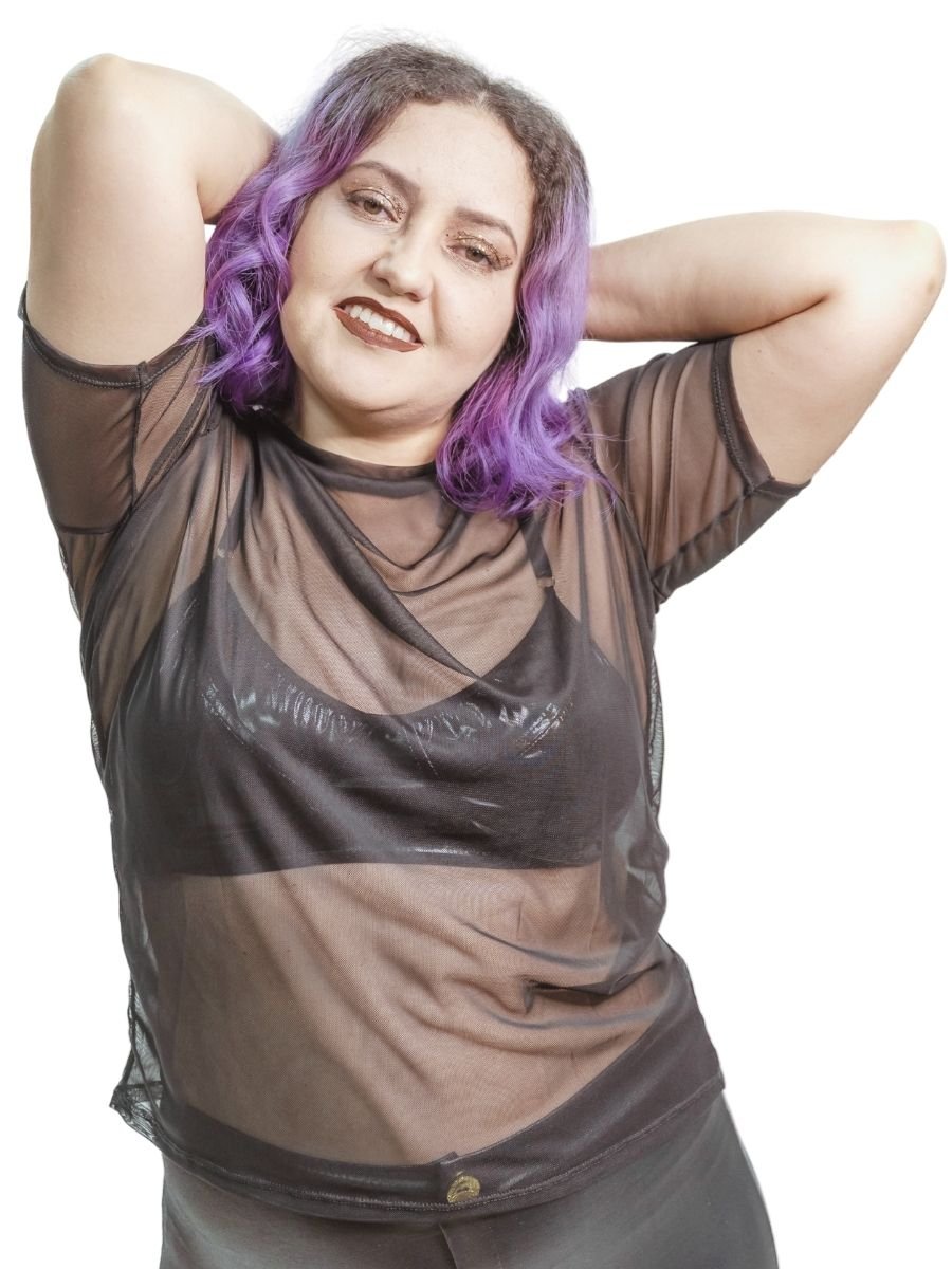 Feita em tule macio, com leve elasticidade e caimento justo, ela valoriza a silhueta e transforma qualquer composição básica em um look cheio de personalidade. É o tipo de peça que pode ir do básico ao ousado, do sutil ao provocante — tudo depende de como você escolhe usar.