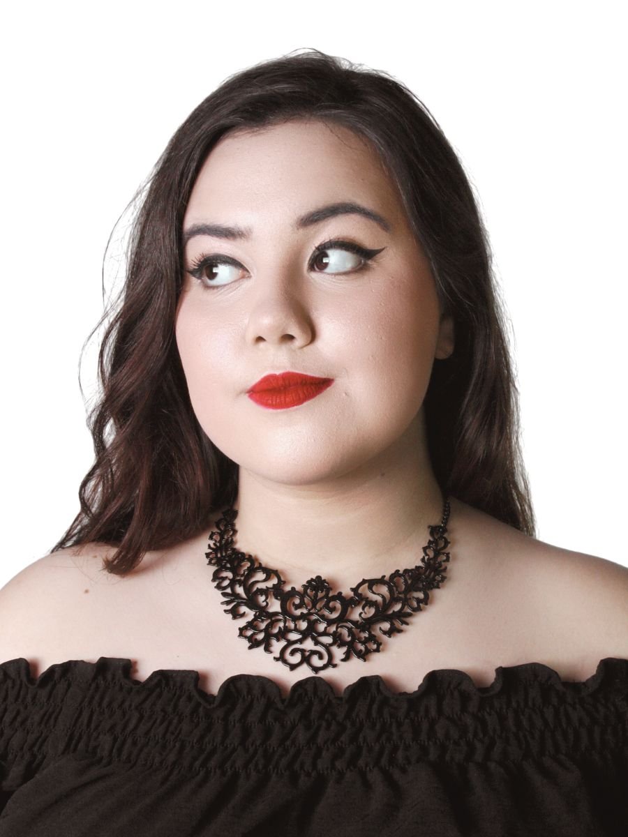 A Choker Arya é uma peça que une o romantismo da renda com a força do metal. Com desenho cortado a laser, sua estrutura imita rendas vitorianas, pintada em preto fosco para um visual elegante, gótico e cheio de personalidade.