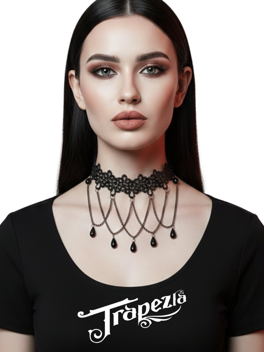 Inspirada no universo gótico, romântico e lolita, essa peça é ideal para quem deseja destacar o colo com estilo e elegância. Um acessório que transforma qualquer produção em uma declaração de estilo.