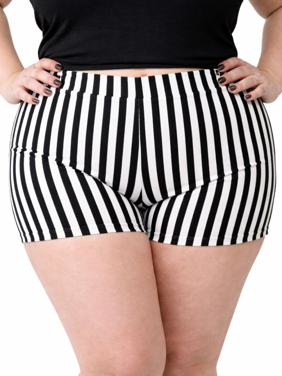 Inspirada no visual icônico das pin-ups e na irreverência dos anos 60 e 70, a Hot Pants Beetlejuice da Trapézia é uma peça que atravessa décadas sem perder a força. Com cintura média/alta, estampa clássica de listras e modelagem que valoriza o corpo, esse short é perfeito para quem gosta de ousar com estilo e confiança.