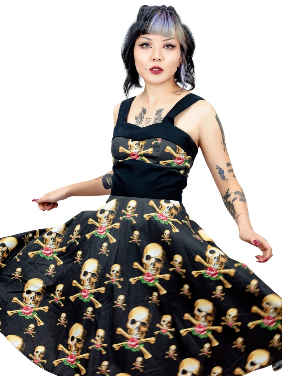Vestido Pin-Up com Estampa de Caveira: Feminilidade e Atitude no Mesmo Look